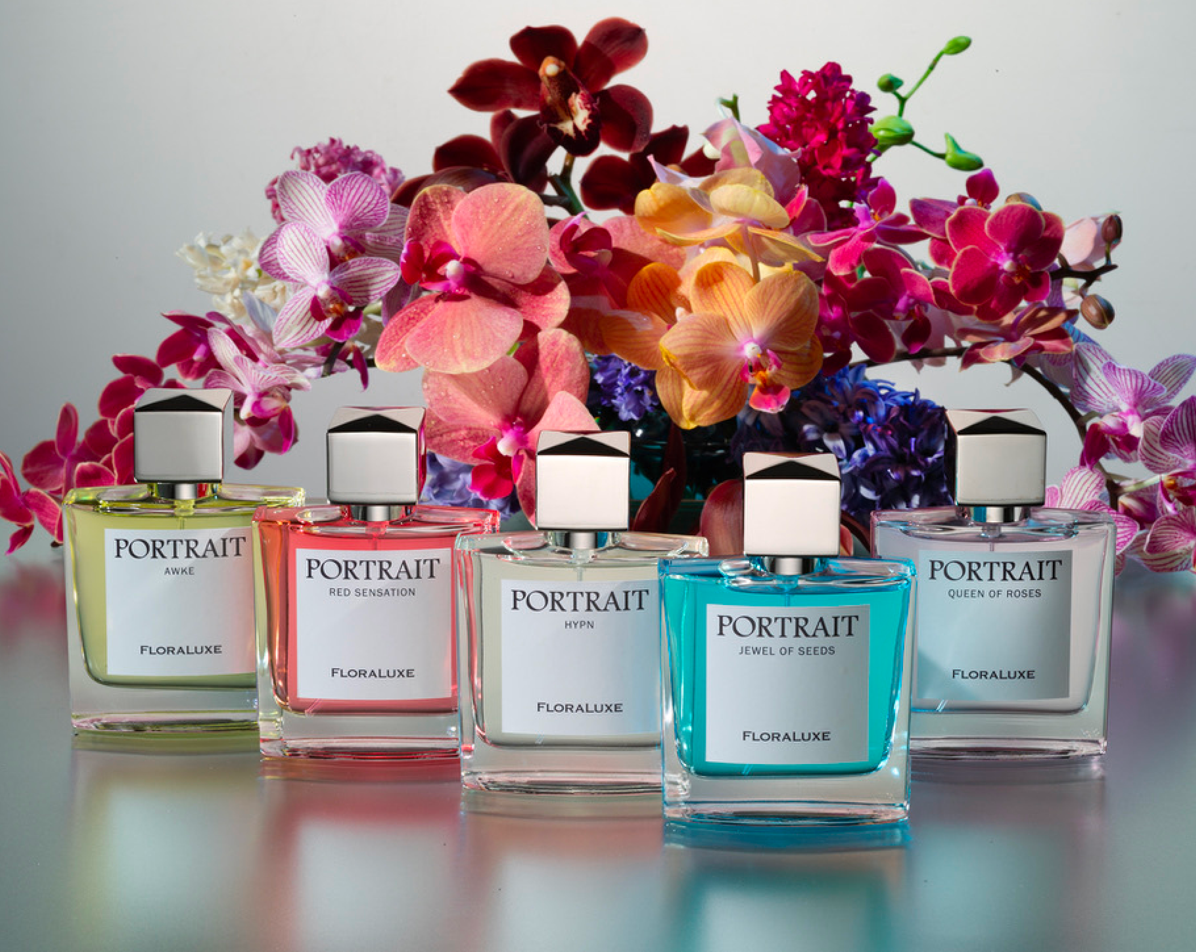 When a person wears the scent created from floral fragrance and each portrait overlaps, a layered, profound and alluring portrait of a new dimension is born within the person; we believe that this is the essence of fragrance, its raison d'être (reason for its existence).